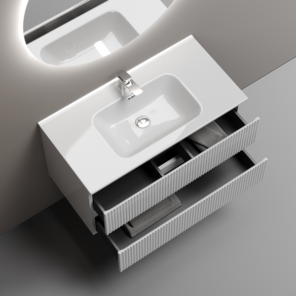 Тумба под раковину подвесная SANCOS Snob R 890х445х500, c двумя ящиками оснащенными доводчиками, Bianco SNR90W