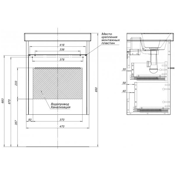 Тумба с раковиной AQUANET Августа 50 Moduo Slim 500х350х450 мм белый 00254069
