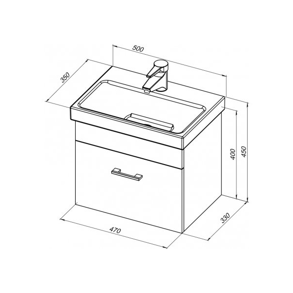 Тумба с раковиной AQUANET Нота 50 Moduo Slim 500х350х450 мм белый 00254064: