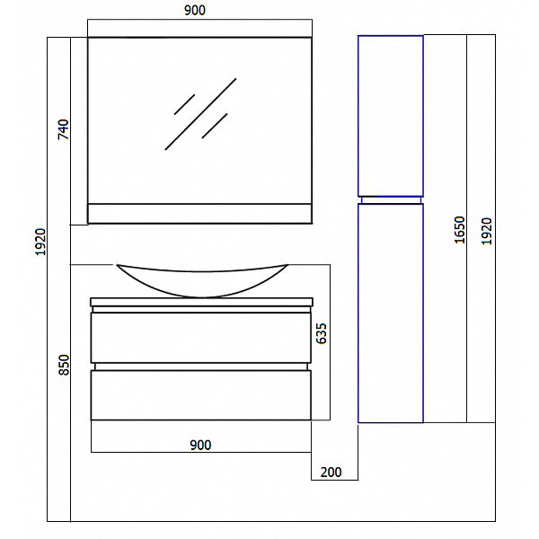 Тумба с раковиной подвесная BANDHOURS Santorini 900х500х635 мм