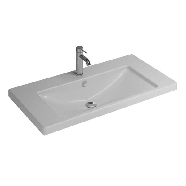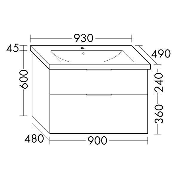База подвесная с керамическим умывальником BURGBAD Eqio 930х490х645 мм. 2 ящика с ручкой желоб, c 1 отв под смеситель цвет фланелевый дубовый F2632