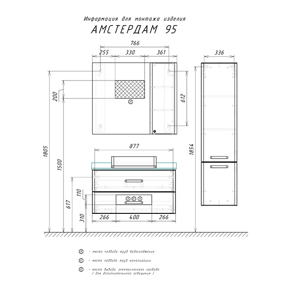 Тумба подготовлена для подключения водоснабжения снизу.