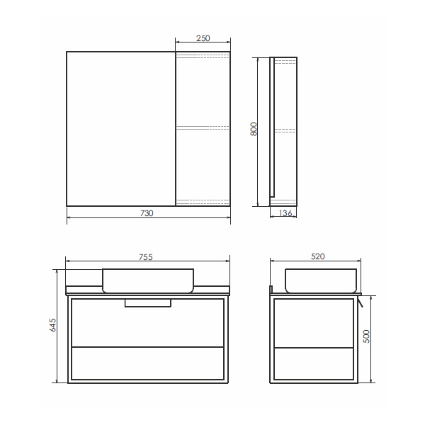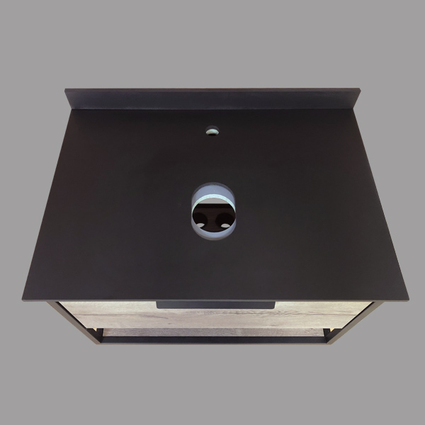 Подвесная тумба-умывальник с одним выкатным ящиком оснащенным системой плавного закрывания и нижней полкой открытого хранения. В основе тумбы - каркас из стального профиля окрашенный черной матовой эмалью.