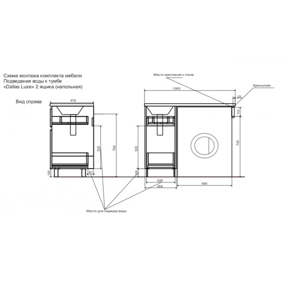 Комплект мебели Dallas Luxe левый 1000х482 напольный 2 ящика (ШхГхВ) 358х476х860 ФР-00002315