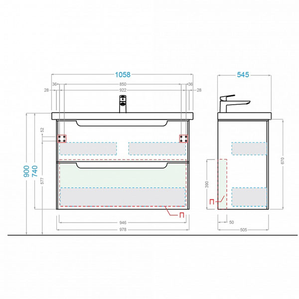 Тумба с раковиной подвесная ALAVANN Berta 105: