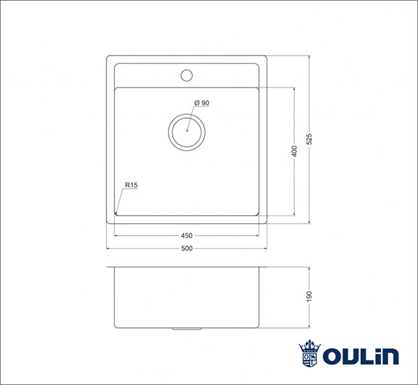 Мойка для кухни OULIN 500х525 мм глубина чаши 190 мм, толщина стали 1.2 мм, монтаж на столешницу или под столешницу OL-FUR114