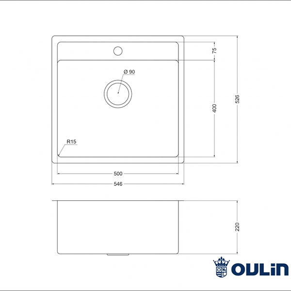 Мойка для кухни OULIN 546х526 мм глубина чаши 190 мм, толщина стали 1.2 мм, монтаж на столешницу или под столешницу OL-F121X