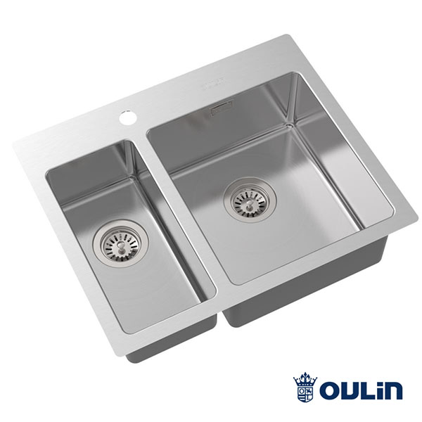 Мойка для кухни OULIN 616х506 мм глубина чаш 190 мм и 140 мм, толщина стали 1.2 мм, монтаж на столешницу или под столешницу OL-FTR202R