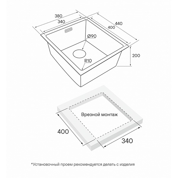 Монтажная длина х ширина 400х340 мм
