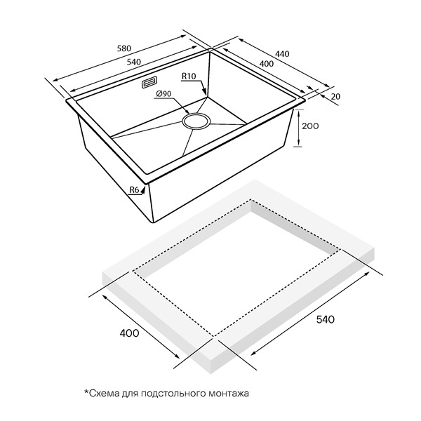 Мойка для кухни PAULMARK Next-Skew 58 UNI 440х580х200 мм золото светлое PM885844-LGМойка для кухни PAULMARK Next 54 UNI 440х540х200 мм черный матовый PM215444-MBN