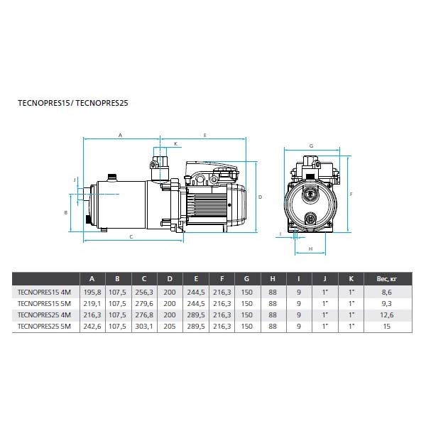 Насосная станция ESPA Tecnopres 15 4M 230 50 000460/STD многоступенчатая самовсасывающая для перекачивания чистой воды, не содержащей механических примесей и длинноволокнистых включений.