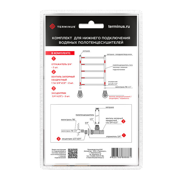 Комплект подключения полотенцесушителя TERMINUS квадратные хром глянцевый:
