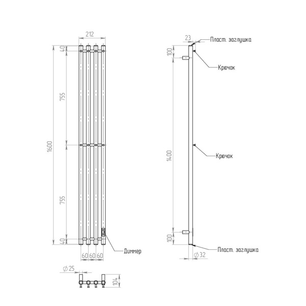 Полотенцесушитель электрический DVEEN X-4 Neo 160х18 полированный К диммер: