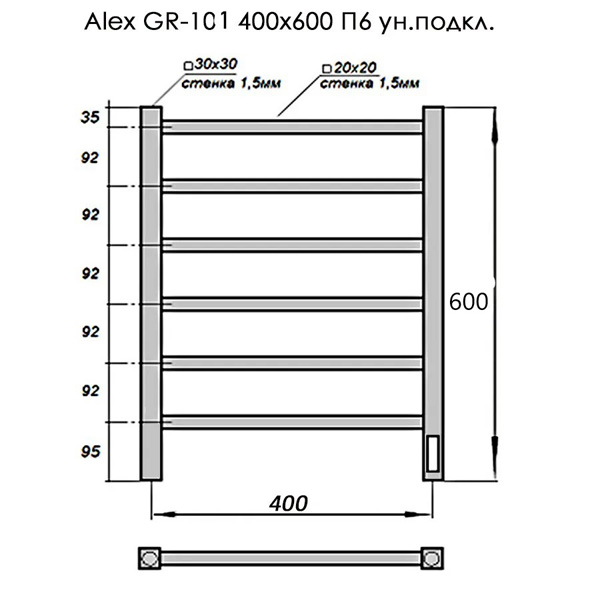 Полотенцесушитель электрический GROIS Alex GR-101 400х600 П6 U White: