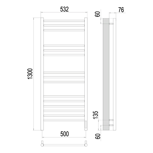 Полотенцесушитель электрический ТЕРМИНУС Аврора 500х1300 мм sensor quick touch П15