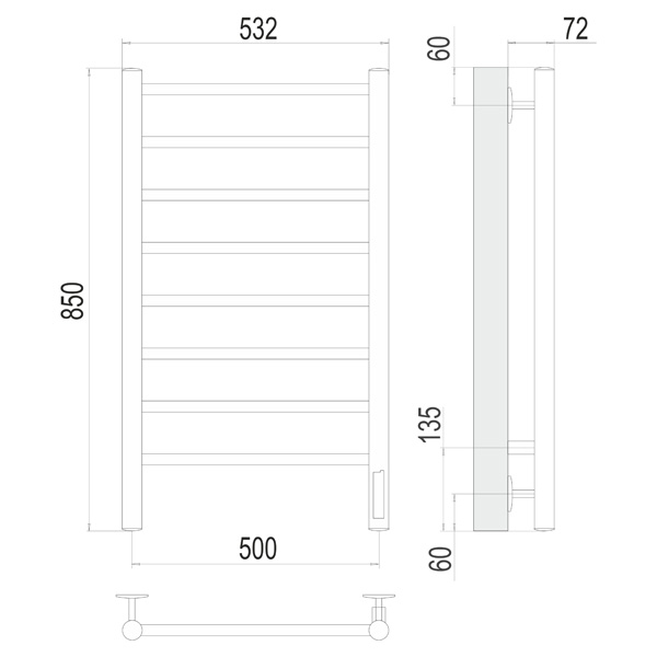 Полотенцесушитель электрический ТЕРМИНУС Аврора 500х850 мм П8 4670078531179: