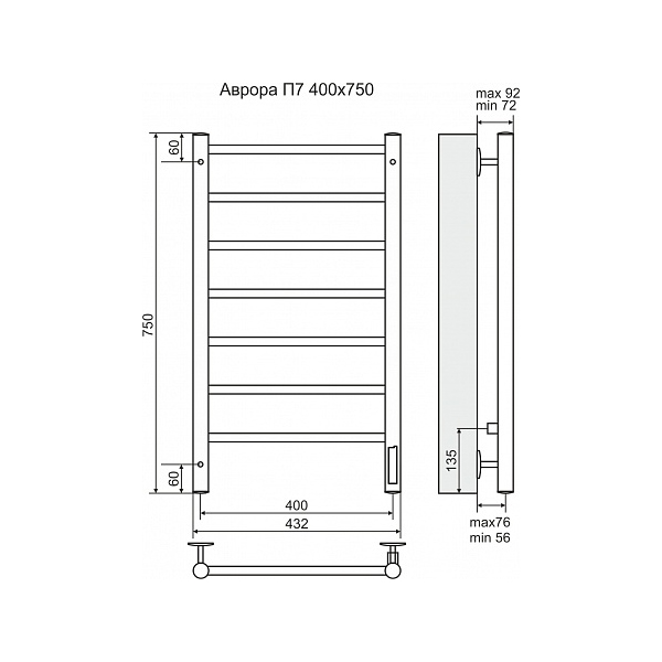 Полотенцесушитель электрический TERMINUS Аврора П7 450х750 мм материал нержавеющая сталь
