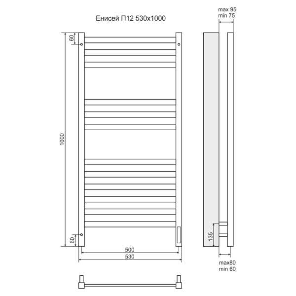 Полотенцесушитель электрический TERMINUS Енисей 530x1071 мм: