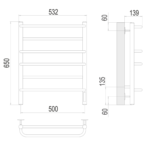 Полотенцесушитель электрический TERMINUS Евромикс П6 532x650 мм quick touch материал нержавеющая сталь