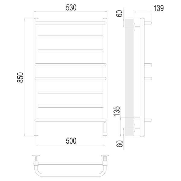 Полотенцесушитель электрический DVEEN X-3 Neo 120х12 оружейная сталь К диммерПолотенцесушитель электрический ENERGY Ergo P 1000х500