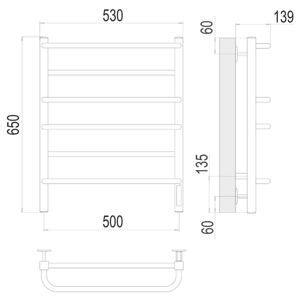 Полотенцесушитель электрический TERMINUS Евромикс Квадро П6 500х650 мм quick touch материал нержавеющая сталь