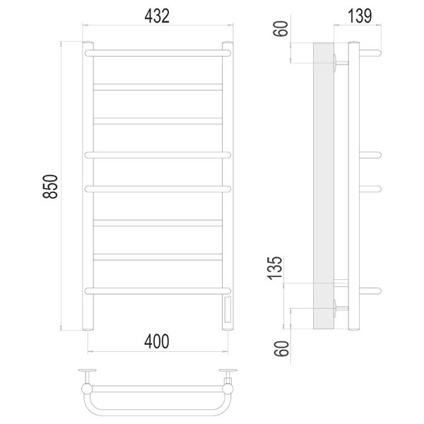 Полотенцесушитель электрический TERMINUS Евромикс П8 432х850 мм quick touch материал нержавеющая сталь
