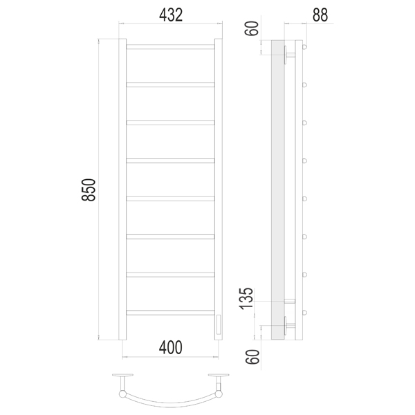 Полотенцесушитель электрический TERMINUS Классик 430х850 мм quick touch материал нержавеющая сталь