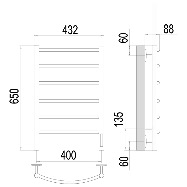 Полотенцесушитель электрический TERMINUS Классик П6 400х650 мм quick touch