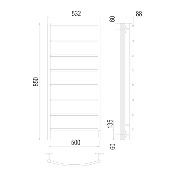 Полотенцесушитель электрический TERMINUS Классик П8 532x850 мм quick touch