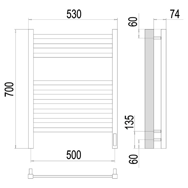 Полотенцесушитель электрический TERMINUS Ното П9 500х700 мм sensor quick touch