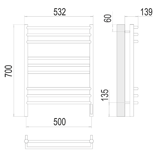 Полотенцесушитель электрический TERMINUS Прато 500х700 мм sensor quick touch