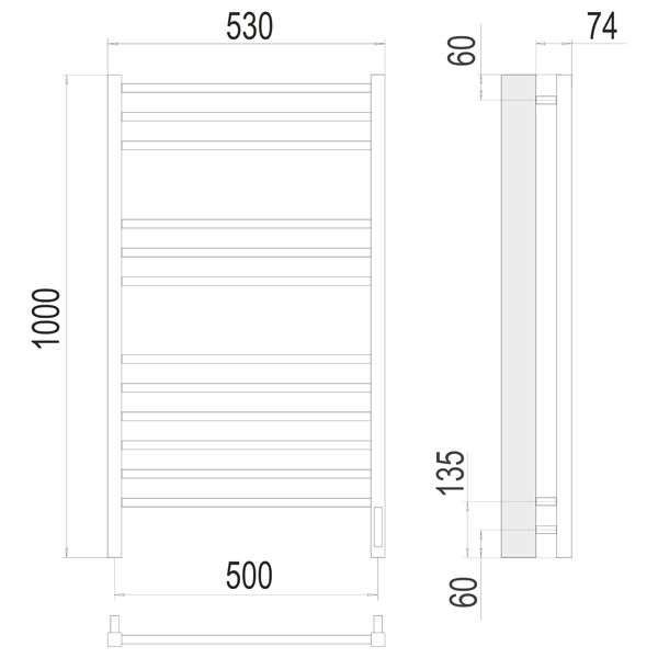 Полотенцесушитель электрический TERMINUS Сицилия 530x1000 мм материал нержавеющая сталь sensor quick touch