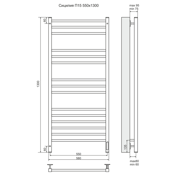 Полотенцесушитель электрический TERMINUS Сицилия 580x1300 мм: