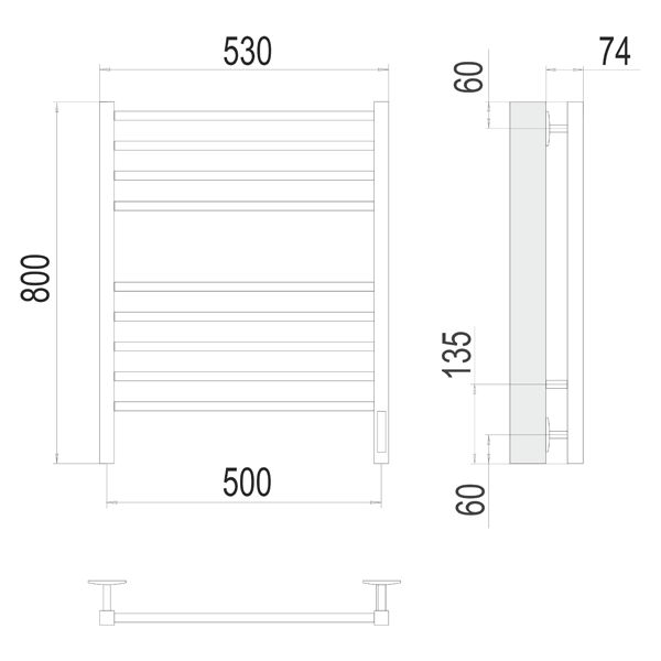 Полотенцесушитель электрический TERMINUS Сицилия П8 500х800 мм черный матовый материал нержавеющая сталь