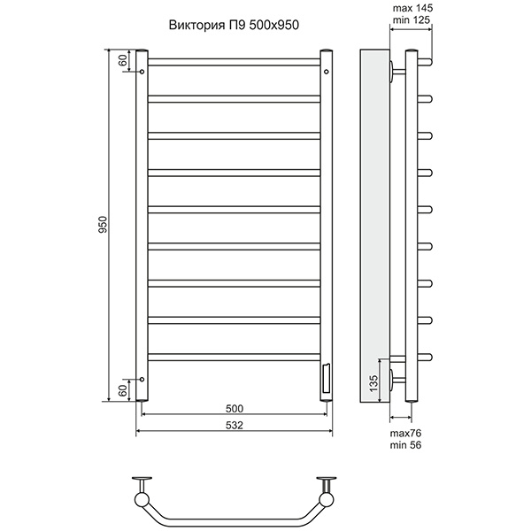 Полотенцесушитель электрический TERMINUS Виктория 532х938 мм материал нержавеющая сталь