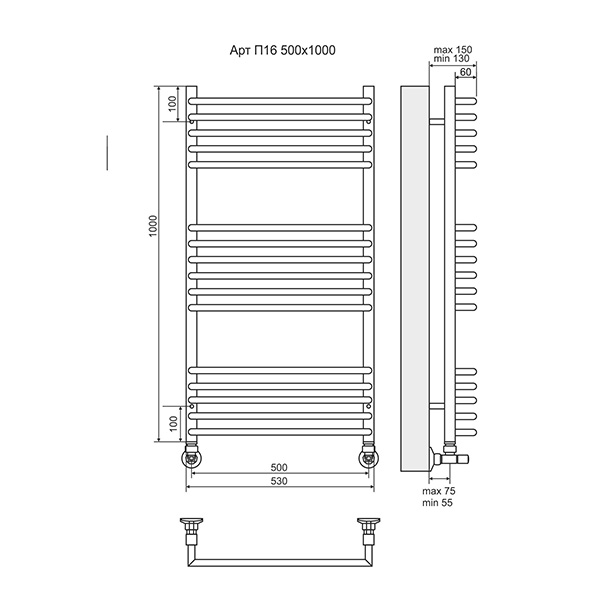 Полотенцесушитель водяной TERMINUS Арт П16 530х1000 мм: