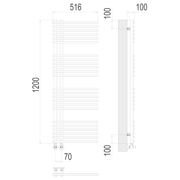 Полотенцесушитель водяной TERMINUS Астра 516x1200 мм: