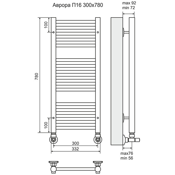 Полотенцесушитель водяной TERMINUS Аврора 332x780 мм: