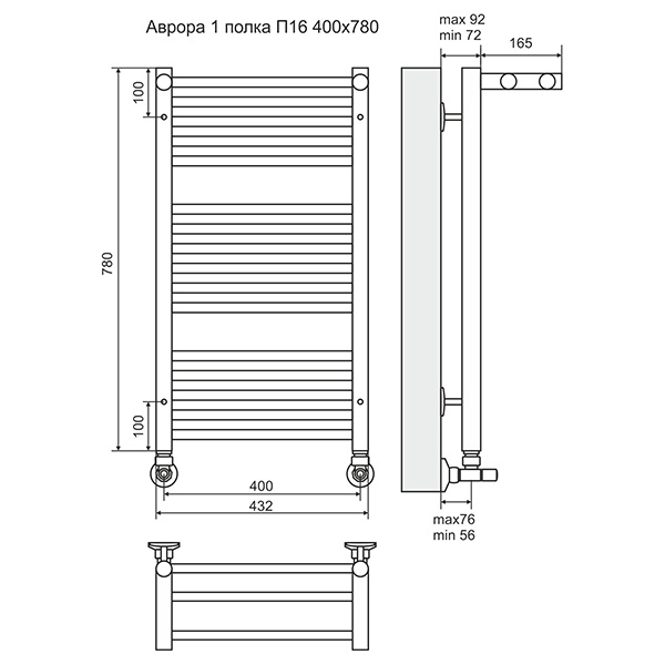 Полотенцесушитель водяной TERMINUS Аврора с одной полкой 432x780 мм: