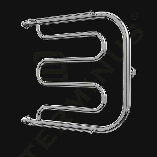 Комплект подключения полотенцесушителя TERMINUS квадратные черный матовыйПолотенцесушитель водяной TERMINUS М-образный с полкой 1 600x532 мм