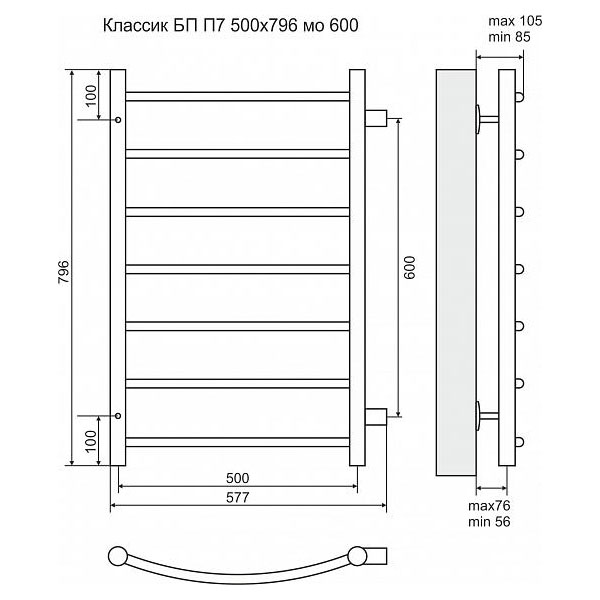 Полотенцесушитель водяной TERMINUS Классик 572x796 ммПолотенцесушитель водяной TERMINUS Виктория 632x796 мм