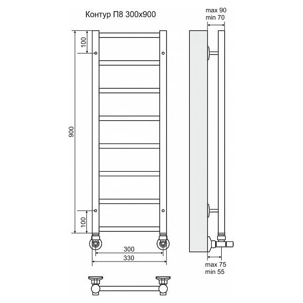 Полотенцесушитель водяной TERMINUS Контур 330x900 мм:
