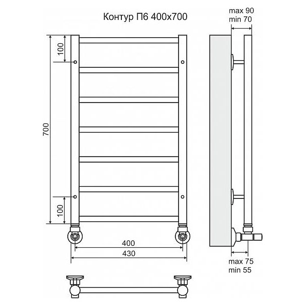 Полотенцесушитель водяной TERMINUS Контур 430x700 мм: