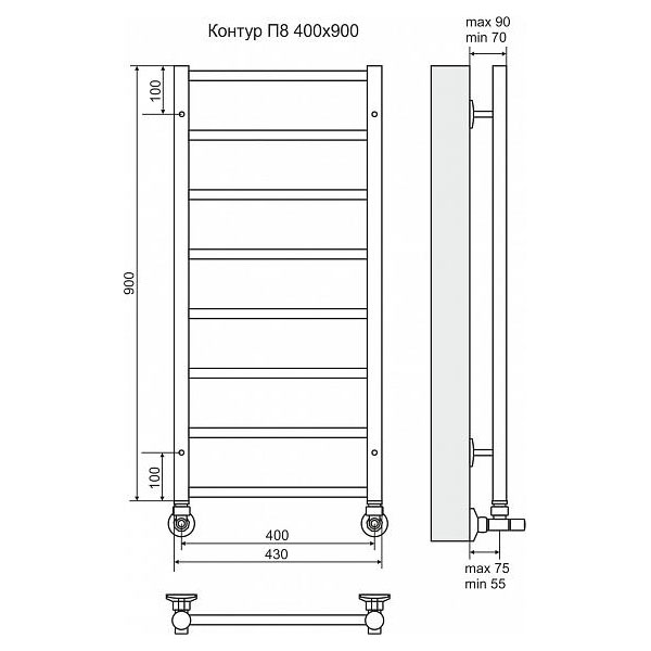 Полотенцесушитель водяной TERMINUS Контур 430x900 мм: