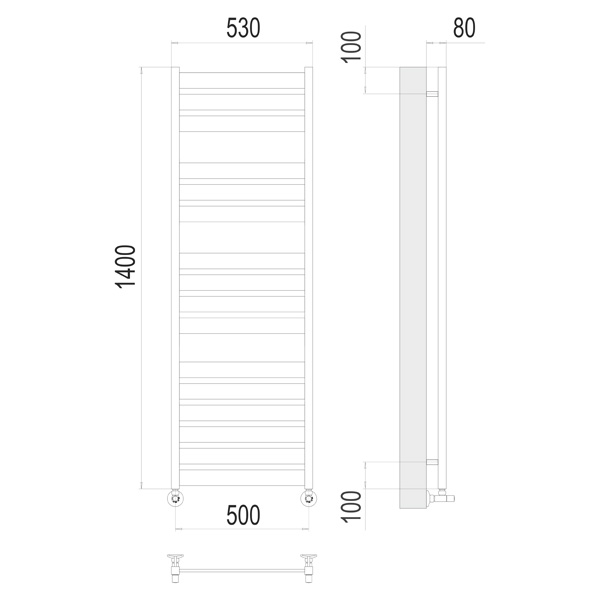 Полотенцесушитель водяной TERMINUS Латте 530x1400 мм