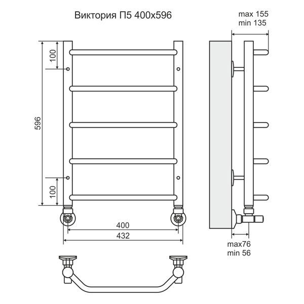 Полотенцесушитель водяной TERMINUS Виктория 432x596 мм материал нержавеющая сталь