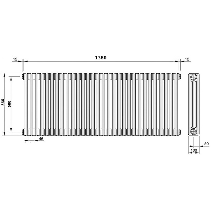 Радиатор трубчатый стальной ZEHNDER Charleston 3057 30 секций 3/4 566x100x1380 мм, межосевое расстояние 500 мм, белый