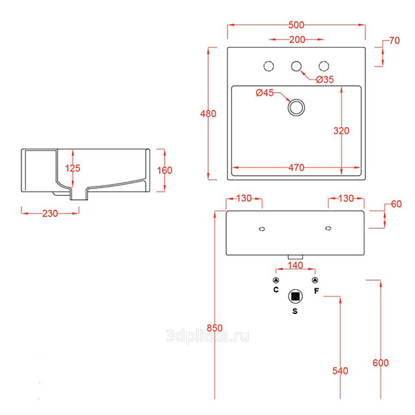 Раковина встраиваемая снизу CERAMALUX 470х350х165 мм 540NBLРаковина угловая HATRIA You and Me DX правая 460х460х230 мм Y0H701