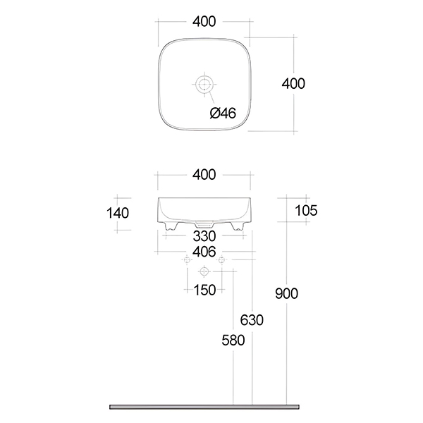 Раковина чаша керамическая KLUDI Resa C квадратная 400x400 мм белый 58CW3043: