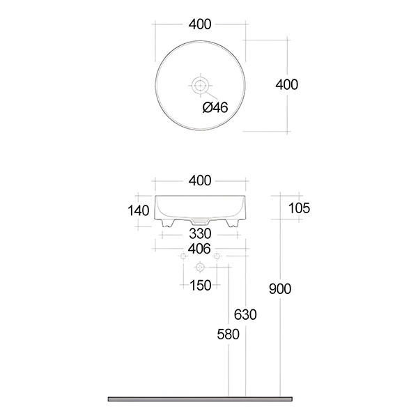 Раковина чаша керамическая KLUDI Resa R круглая 400x400 мм черный матовый 58CW1039: